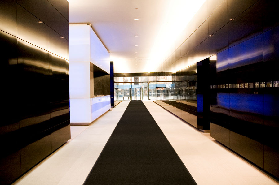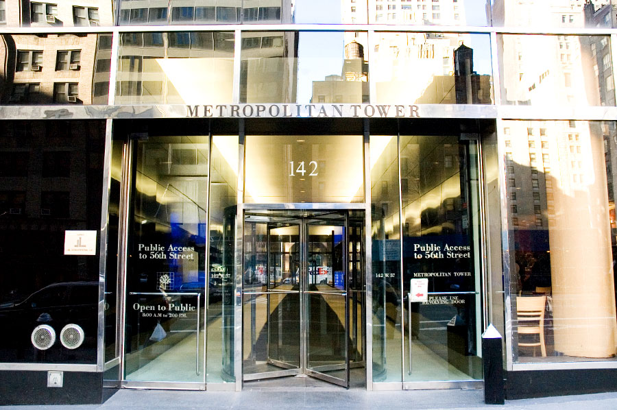Scope: Soheil Mosun Limited was contracted to manufacture and install an aluminum frame and cladding system as well as a steel, internally illuminated reception desk enclosure which would constitute the entire main floor reception area and lobby of the Metropolitan Tower at 142 West 57th Street in New York City.