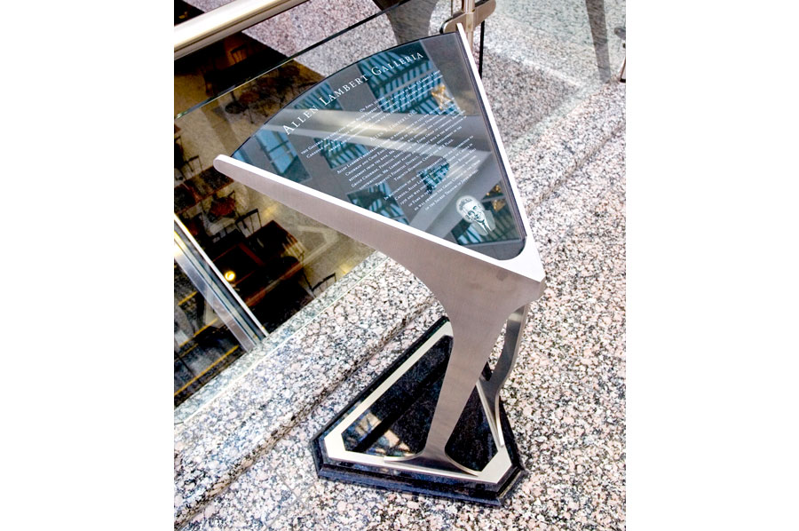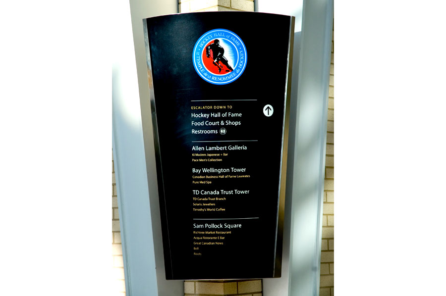 Scope: Soheil Mosun Limited was contracted to design and install the wayfinding signs and directories for Brookfield Place, previously known as BCE Place, a class "A" office complex in Toronto's financial district.