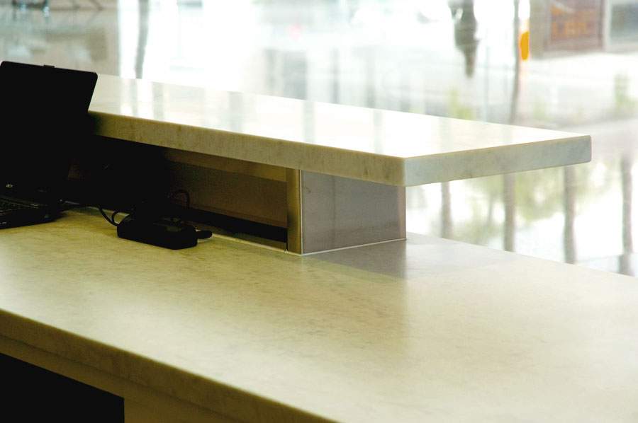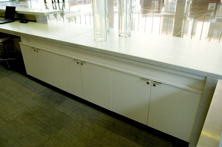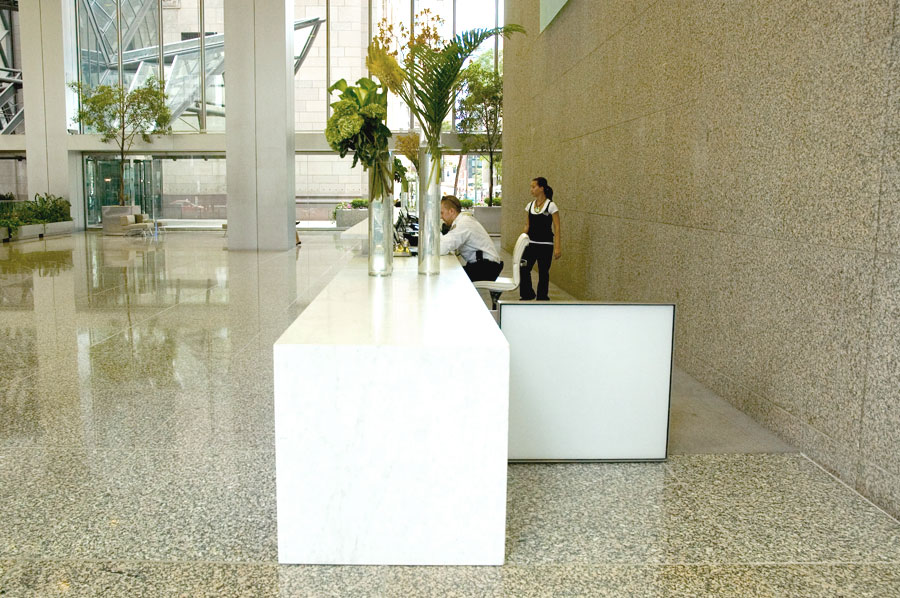 Scope: Soheil Mosun Limited was contracted to build this solid marble, steel framed concierge desk in the atrium of Commerce Court West, a class 'A' office tower in the heart of Toronto's financial district.