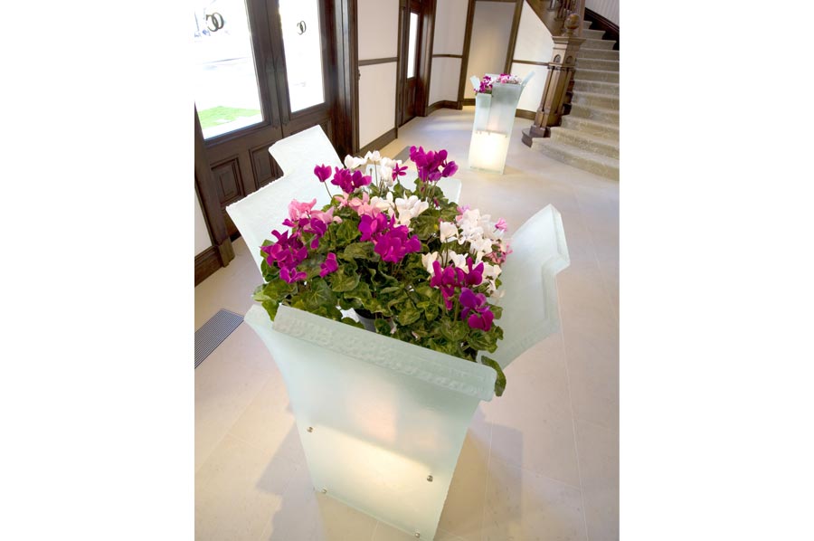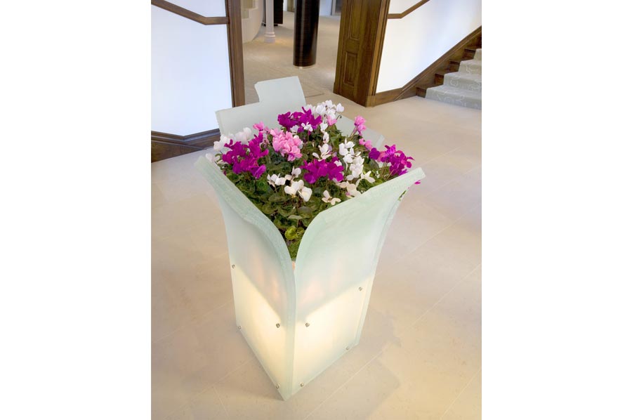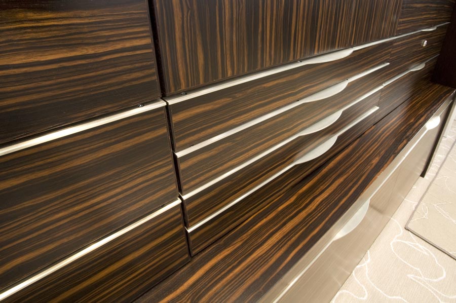 Highlights: The cases feature brushed nickel-silver alloy, curved and formed, trims, accents, pulls and other operational hardware as well as custom slumped Starfire glass components in the creation of the low curved display cases, tall eliptical and square showcases, table top vitrines, internally illuminated vases and furniture, with the highest possible craftsmanship.