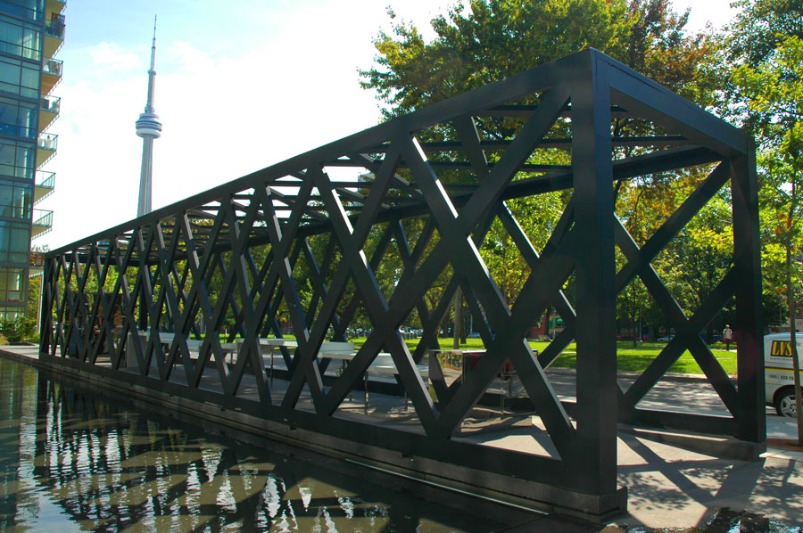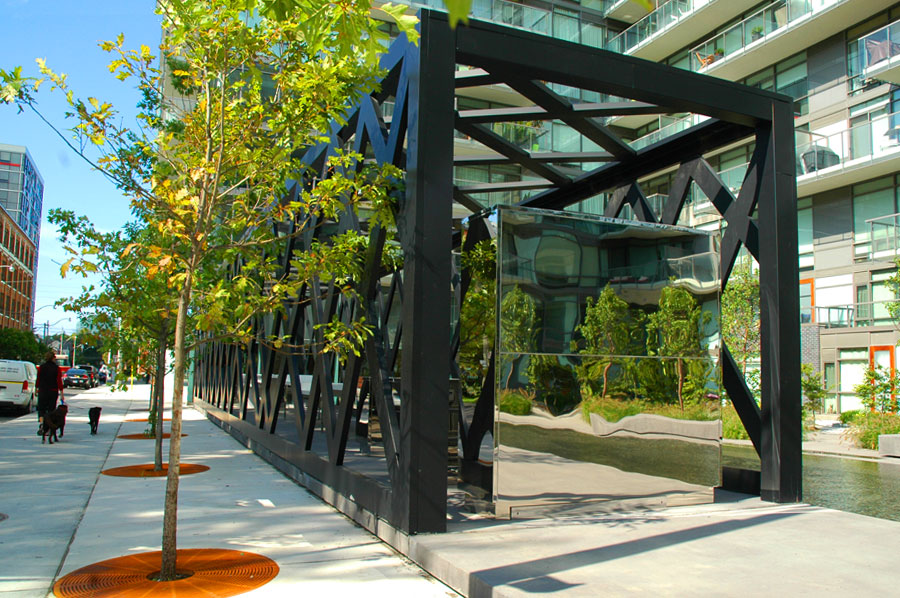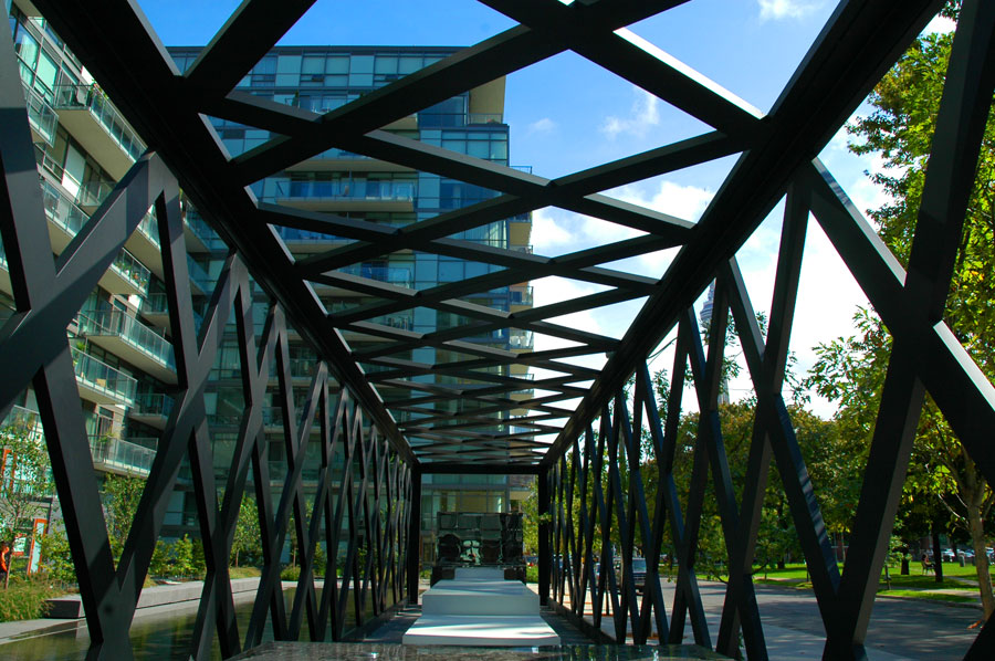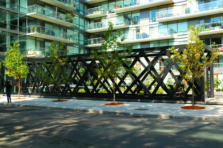 Scope: Soheil Mosun Limited was contracted to manufacture and install this public art trellis pavilion at 550 Wellington Ave in downtown Toronto.