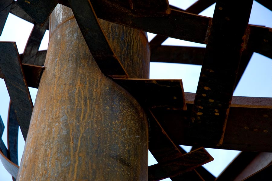 Highlights: Constructed of Corten steel, the largest of the three (3) sculptures is 51' long, 17' high and 11' wide. The second largest of the trio is 20' long, 17' high and 11' wide. The third and smallest of the three is 15' long, 17' high and 11' wide. The sculptures themselves are comprised of waterjet cut plate of Corten steel at .25" thickness and welded. The legs of each sculpture are rolled and then seam welded to give a tree trunk look to the finished sculptures. These sculptures are virtually maintenance free.