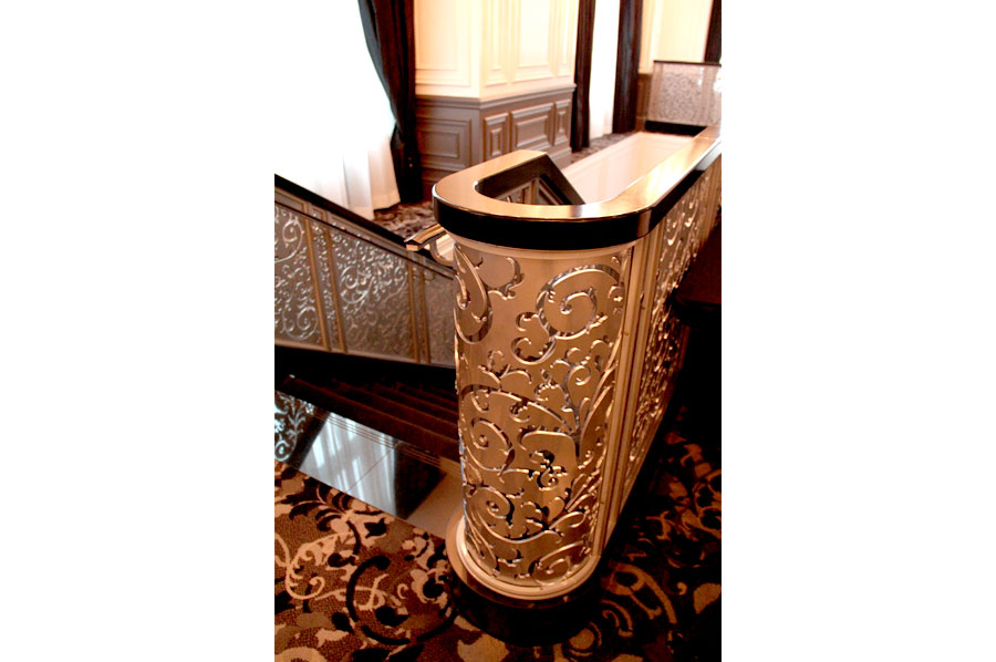 Scope: Soheil Mosun Limited was contracted to manufacture and install the monumental staircase from the 9th floor to the 10th floor grand ballroom, as well as a second custom staircase to the second floor common area.