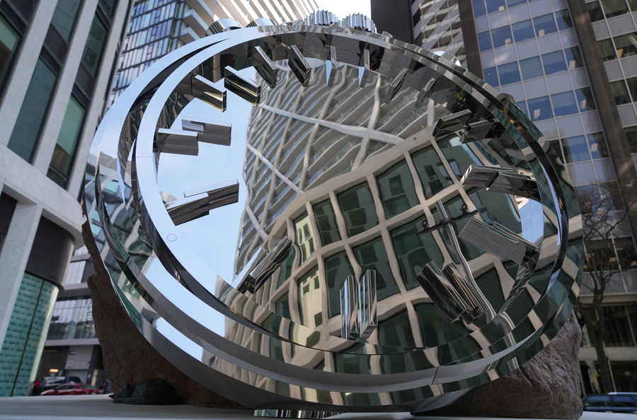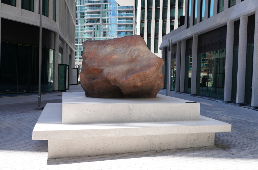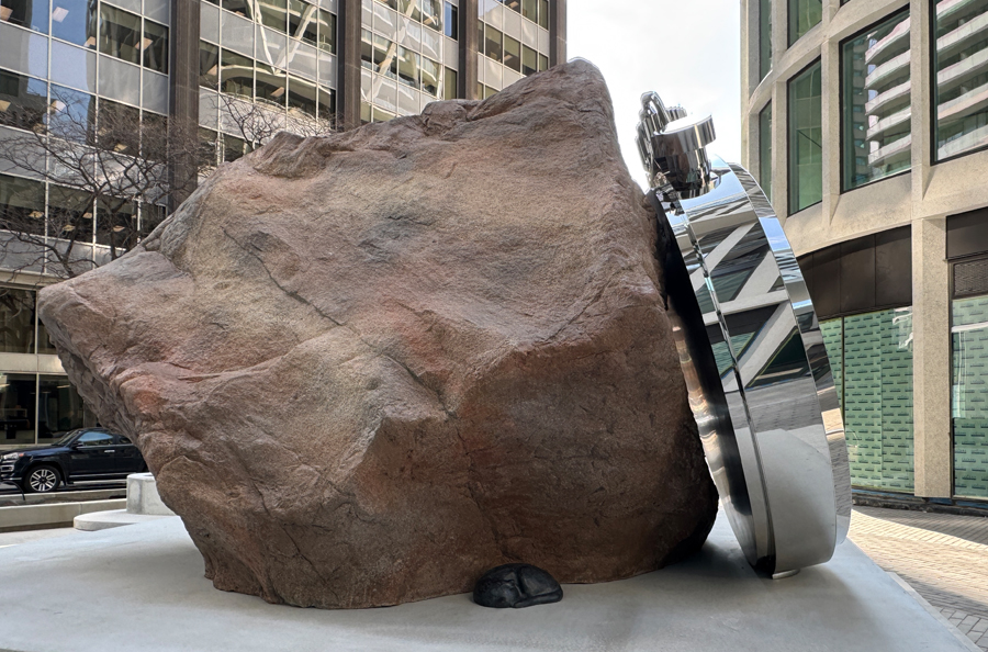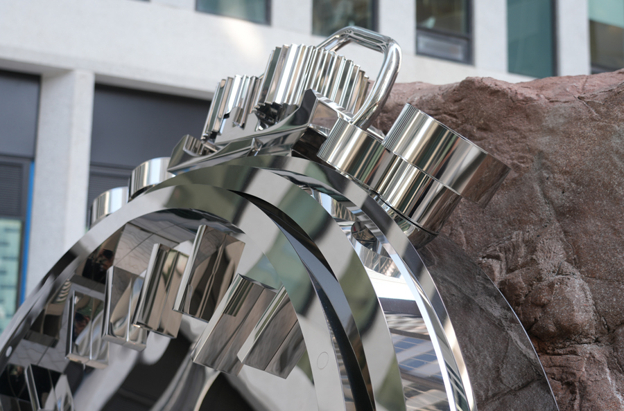 Scope: Soheil Mosun Limited was commissioned to manufacture design, build and install this remarkable and creative piece of public art sculpture at the artist's Alley condos in Toronto, depicting a large rock with a stainless steel clock face and a sleeping granite cat telling a story conveyed by the artist, Ryan Gander.