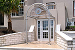 Canopy & Crest - Stainless steel entrance canopy with 3/8" thick Lexan glazing and St. Stl. plate and multi-coloured crest