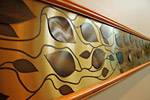 Vine of Remembrance - Wall mounted etched and patina infilled brass vine made for a circular chapel as well as a 1/4" thick plaque
