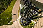 Monumental Staircase - Monumental stainless steel and glass staircase, mezzanine guardrail and smoke baffle