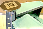 Reception Desk - Original reception desk with glass hull and stainless steel framing and balustrades